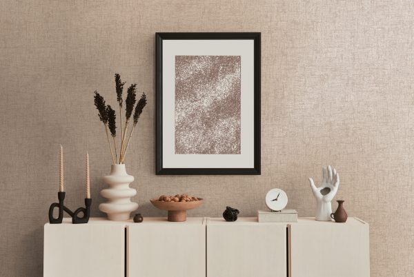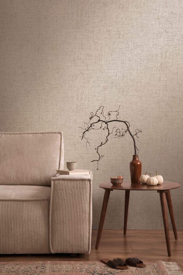 Medidas: 10,05 m x 0,53 m. Case: 53/26 cm (offset match). Calidad: tejido no tejido. Estilo: Papel pintado texturado en color marrón/beige metalizado.