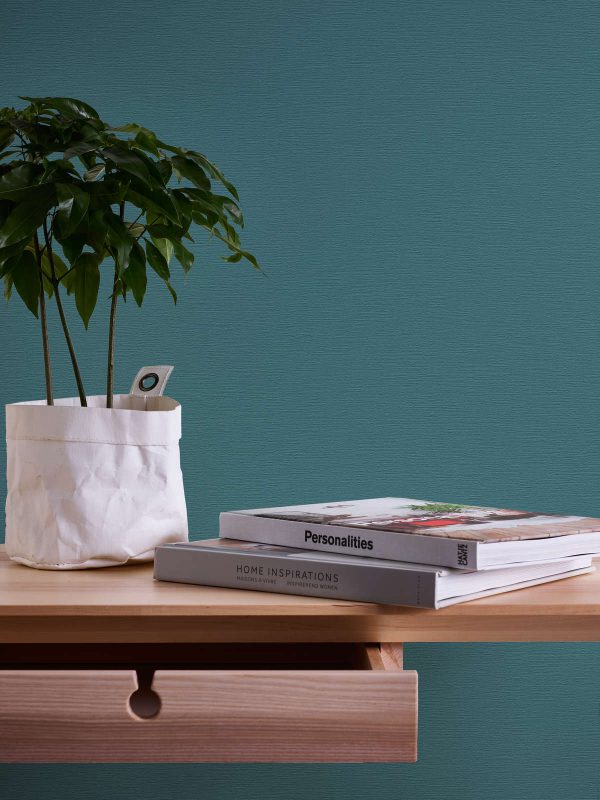 Medidas: 10,05 m x 0,53 m. Case: Sin case. Calidad: Tejido no tejido. Estilo: Papel pintado liso texturado en color verde turquesa.