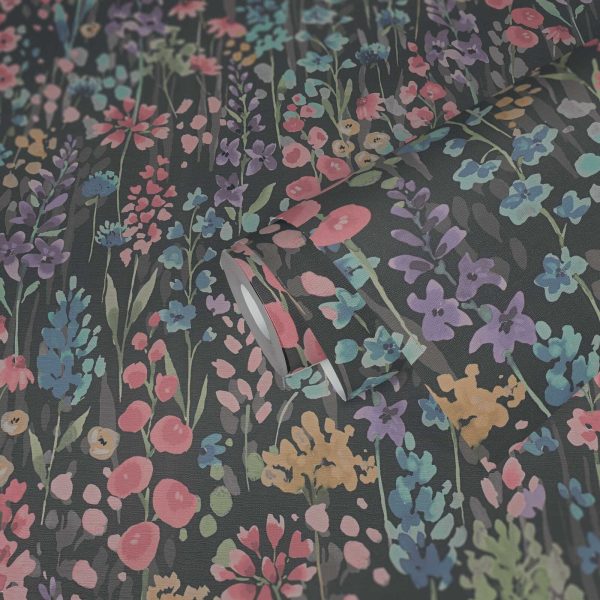 Estilo: Papel pintado con motivos florales de estilo en acuarela.
