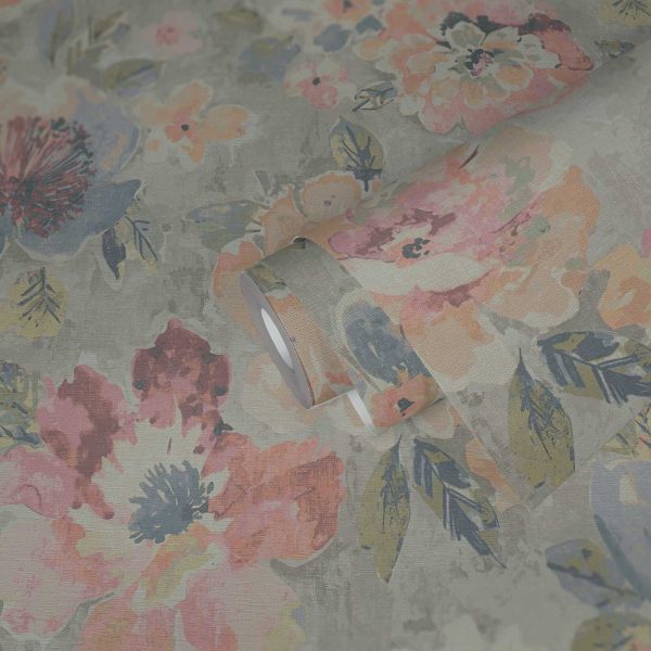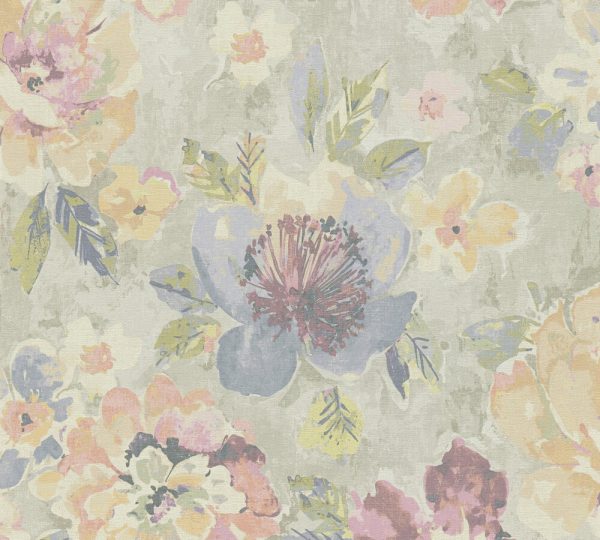 Medidas: 10,05 m x 0,53 m. Case: 64 / 32 cm (offset match). Calidad: Tejido no tejido. Estilo: Papel pintado con motivos florales de estilo vintage en acuarela de color amarillo, rosa y violeta.