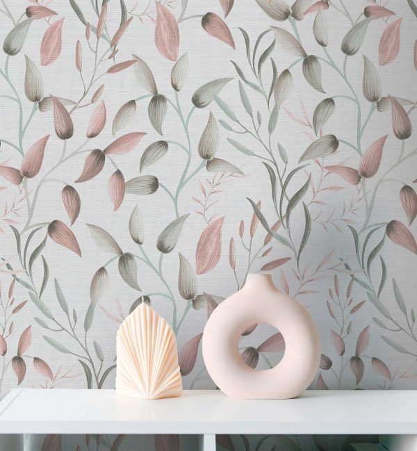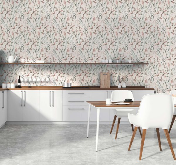 Medidas: 10,05 m x 0,53 m. Case: 64 cm (case recto). Calidad: tejido no tejido. Estilo: Papel pintado diseño de zarcillo floral con hojarasca estilo acuarela en colores verde, rosa y crema.