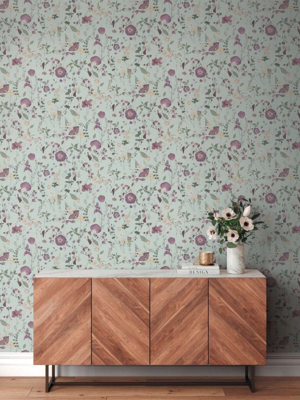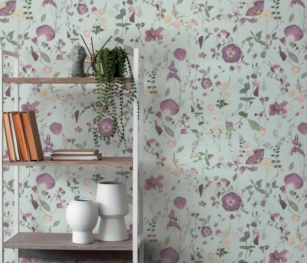 Medidas: 10,05 m x 0,53 m. Case: 64/ 32 cm (offset match/ case salteado). Calidad: tejido no tejido. Estilo: Papel pintado diseño floral estilo vintage en colores verde, violeta y amarillo.
