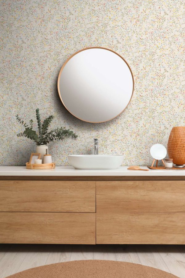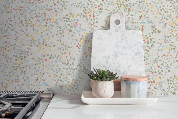 Medidas: 10,05 m x 0,53 m. Case: 64/ 32 cm (offset match/ case salteado). Calidad: tejido no tejido. Estilo: Papel pintado diseño zarcillo floral campestre de estilo vintage en colores amarillo, verde y fondo crema.