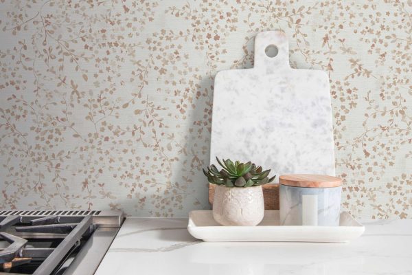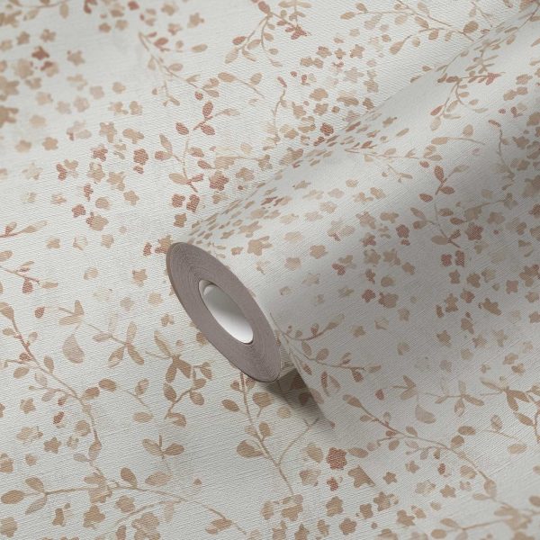 Medidas: 10,05 m x 0,53 m. Case: 64/ 32 cm (offset match/ case salteado). Calidad: tejido no tejido. Estilo: Papel pintado diseño zarcillo floral campestre de estilo vintage en color beige, marrón sobre fondo crema.