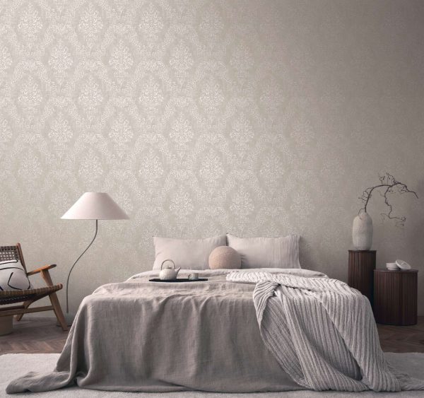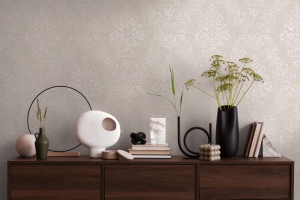 Medidas: 10,05 m x 0,53 m. Case: 64 cm (case recto). Calidad: tejido no tejido. Estilo: Papel pintado diseño ornamental estilo barroco en color beige con detalles metalizados.