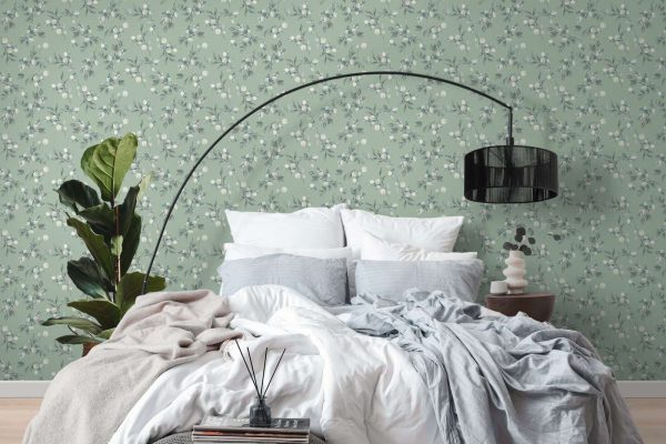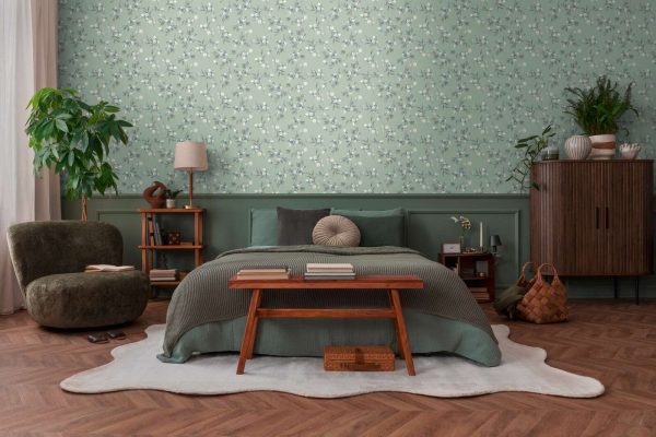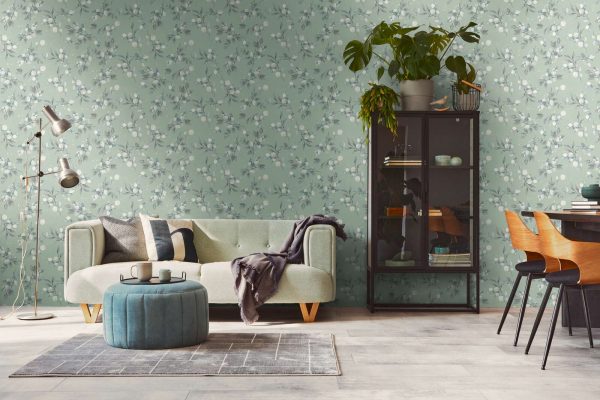 Medidas: 10,05 m x 0,53 m. Case: 64/32 cm (offset match/ case salteado). Calidad: tejido no tejido. Estilo: Papel pintado diseño floral estilo romántico-chic en color verde turquesa con ligero efecto metalizado.
