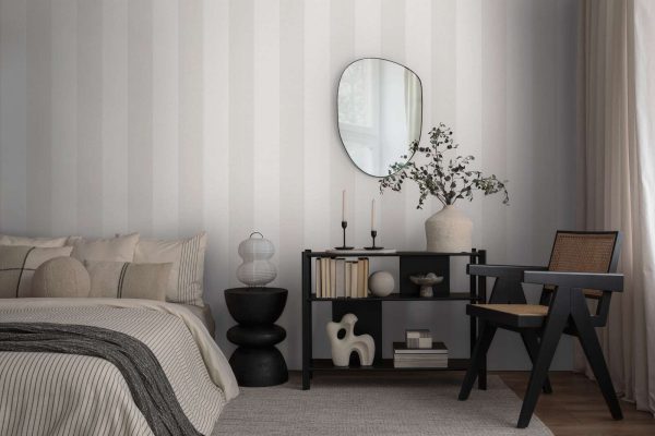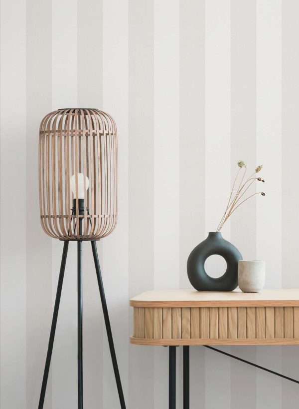 Medidas: 10,05 m x 0,53 m. Case: Sin case. Calidad: Tejido no tejido. Estilo: Papel pintado rayas de 13 cm ancho en color beige y crema con acabado texturizado.