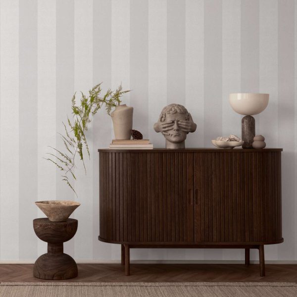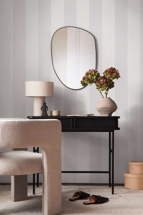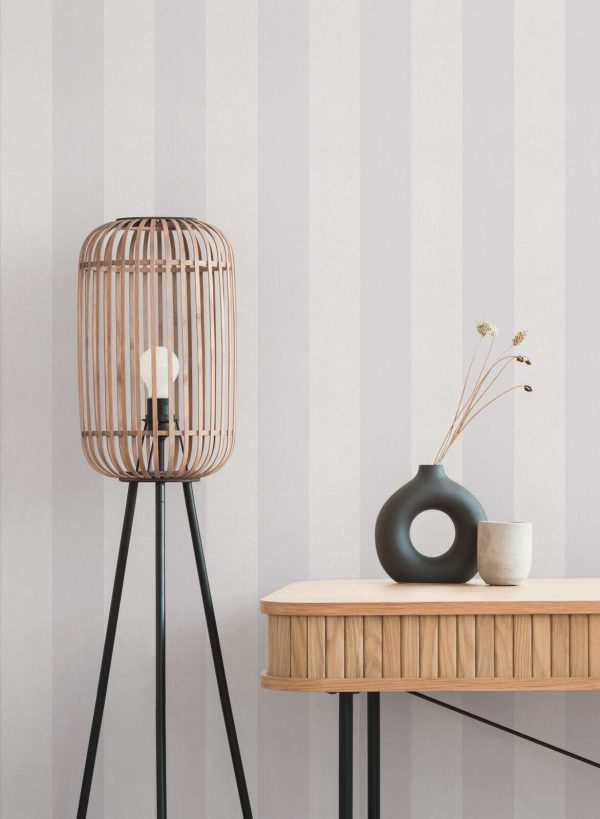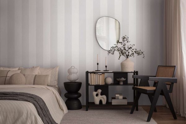 Estilo: Papel pintado rayas de 13 cm ancho en color gris y blanco con acabado texturizado.