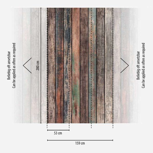 Medidas: 2,80 m x 1,59 m. (3 paneles de 0,53 m) Case: Sin case. Calidad: Tejido no tejido. Estilo: Mural digital tablones de madera, aspecto vintage. Patrón que permite repetición.