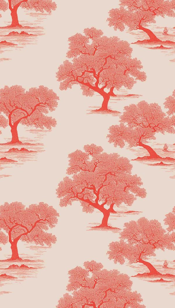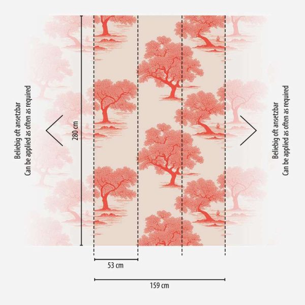 Medidas: 2,80 m x 1,59 m. (3 paneles de 0,53 m) Case: Sin case. Calidad: Tejido no tejido. Estilo: Mural digital con árboles en color rojo sobre fondo blanco. Patrón que permite repetición.