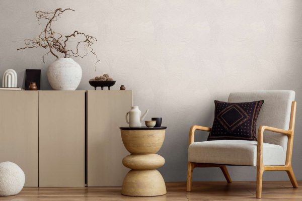 Medidas: 10,05 m x 0,53 m. Case: 64 cm (straight match-case recto). Calidad: Tejido no tejido. Estilo: Papel pintado geométrico ondulado de diseño abstracto en color blanco-crema.