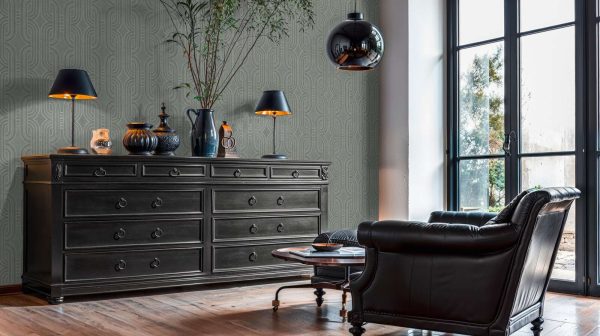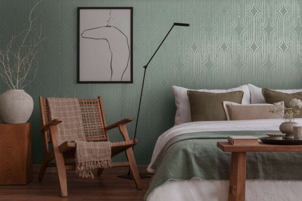 Medidas: 10,05 m x 0,53 m. Case: 32 cm (straight match-case recto). Calidad: Tejido no tejido. Estilo: Papel pintado geométrico estilo retro en color verde aguamarina.