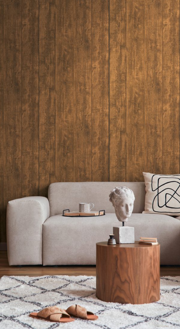 Medidas: 10,05 m x 0,53 m. Case: Sin case. Calidad: Tejido no tejido. Estilo: Papel pintado efecto madera rústica con textura.