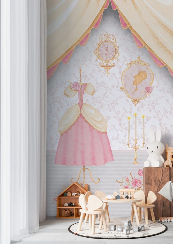 Mural de impresión digital diseño princesas y cuentos de hadas. Medidas: 8,80 m x 0,53 m (3 paneles de 0,53 m). Case: Sin case. Calidad: Tejido no Tejido. Estilo: Infantil/Juvenil. Acabado: Mate.