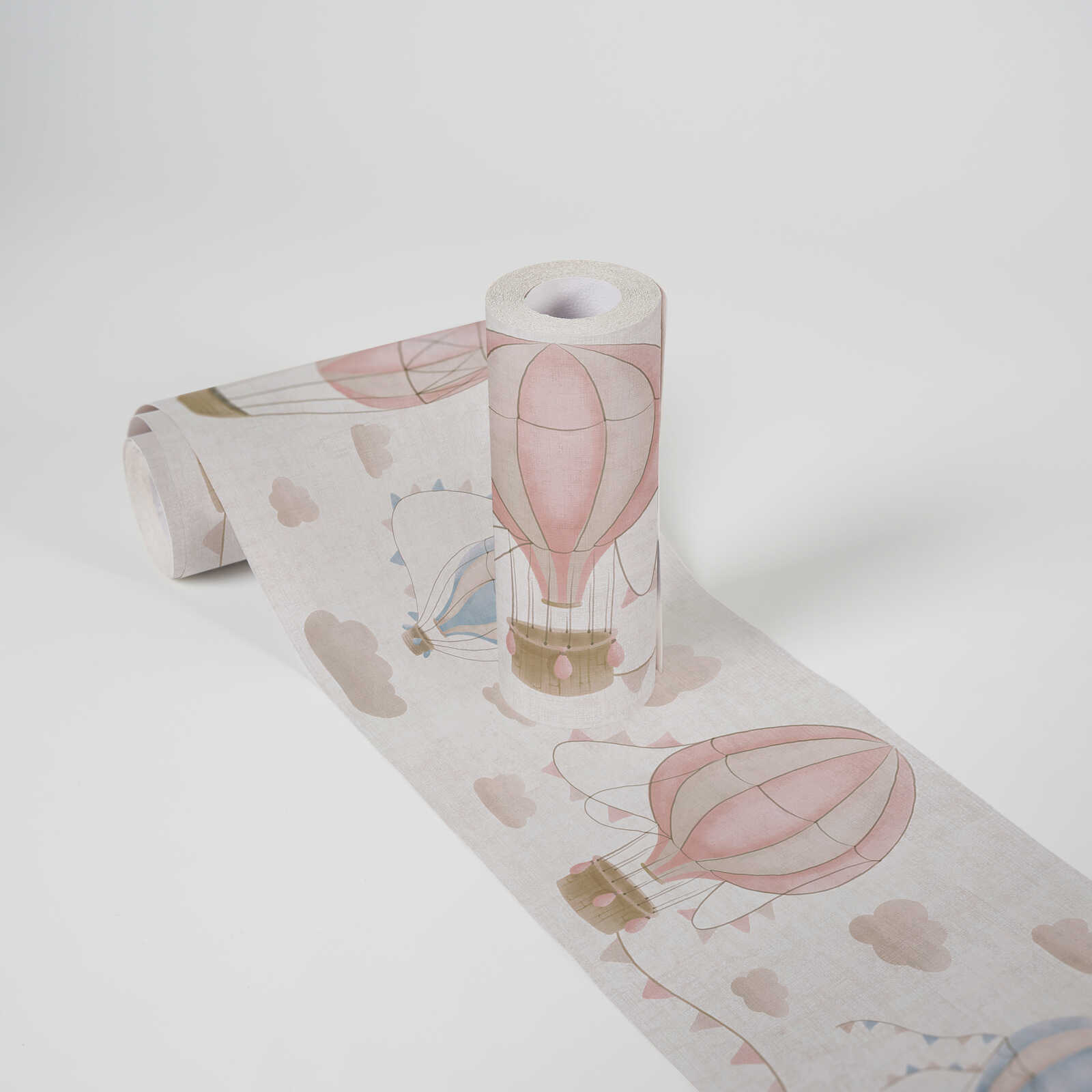 Cenefa infantil (13 cm de ancho) diseño globos aerostáticos y nubes en suaves colores pastel.