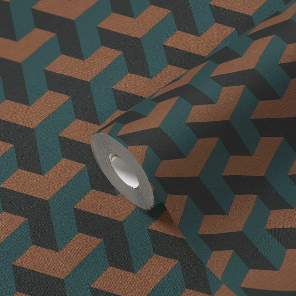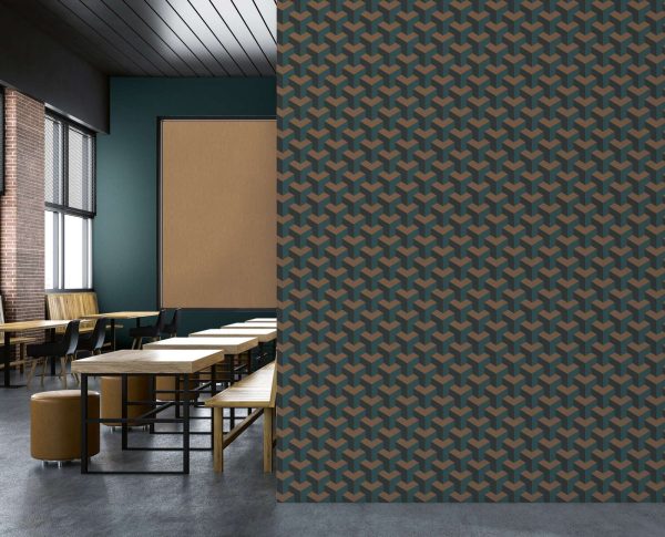 Papel pintado geométrico efecto 3D en colores verde y negro con detalles metálicos. Medidas: 10,05 m x 0,53 m. Case: 64 / 32 cm (case salteado). Calidad: Tejido no Tejido.Estilo: Geométrico/Rayas.Acabado: Vinilo Texturado.