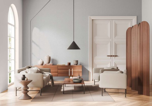 Papel pintado geométrico diseño ondas estilo retro en color crema y blanco efecto nacarado. Medidas: 10,05 m x 0,53 m. Case: 64 / 32 cm (case salteado). Calidad: Tejido no Tejido.Estilo: Retro Chic. Geométrico/Rayas.Acabado: Vinilo Espumado.