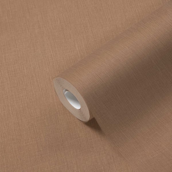 Papel pintado lliso texturado efecto lino en color tierra. Medidas: 10,05 m x 0,53 m. Case: sin case. Calidad: Tejido no Tejido.Estilo: Minimalista/Lisos.Acabado: Vinilo Texturado.