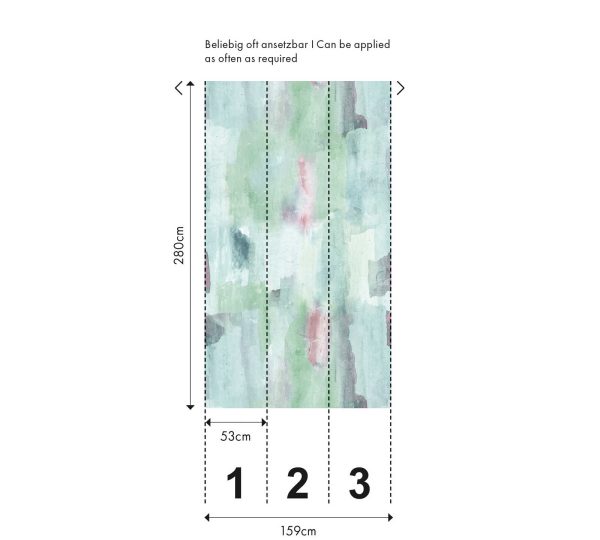 Mural digital diseño abstracto efecto acuarela en colores azules y verdes. Patrón permite repetición.