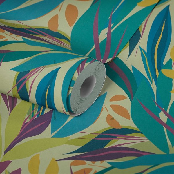 Papel pintado diseño floral estilo pop-art vinage en colores verde, rojo, amarillo. Medidas: 10,05 m x 0,53 m. Case: 53 cm (case recto). Calidad: Tejido no Tejido. Estilo: Diseños/Tendencias. Retro Chic. Jungle Chic. Acabado: Vinílico mate.
