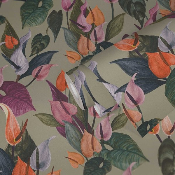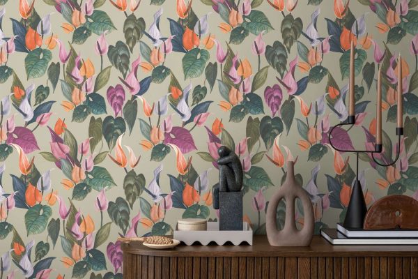Papel pintado estilo floral con efecto pintado a mano en diferentes colores, sobre fondo gris. Medidas: 10,05 m x 0,53 m. Case: 53 cm (case recto). Calidad: Tejido no Tejido. Estilo: Diseños/Tendencias. Romantic Chic. Acabado: Vinílico mate.