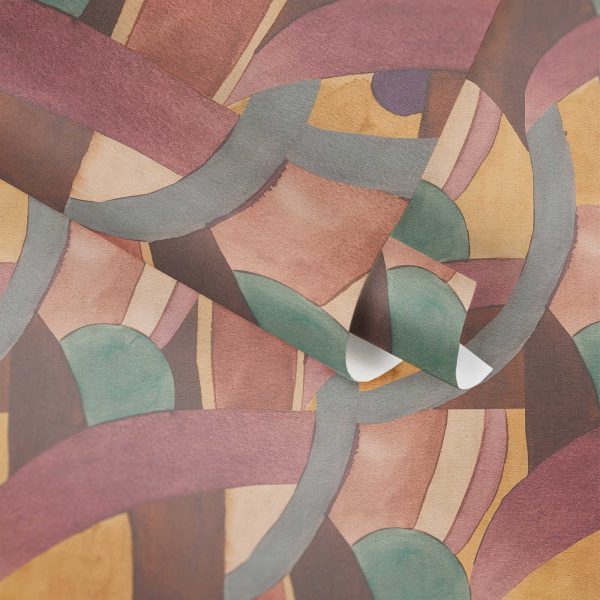 Papel pintado diseño abstracto estilo retro en colores rojo-granate, ocre y verde turquesa. Medidas: 10,05 m x 0,53 m. Case: 53 cm (case recto). Calidad: Tejido no Tejido. Estilo: Diseños/Tendencias. Retro Chic. Boho Chic. Acabado: Vinílico mate.