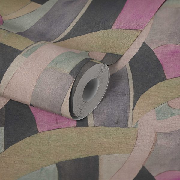 Papel pintado diseño abstracto estilo retro en colores beige, negro, verde y rosa. Medidas: 10,05 m x 0,53 m. Case: 53 cm (case recto). Calidad: Tejido no Tejido. Estilo: Diseños/Tendencias. Retro Chic. Boho Chic. Acabado: Vinílico mate.