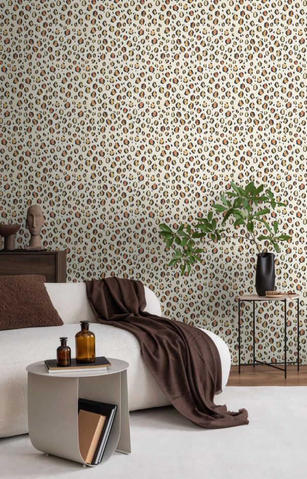 Papel pintado diseño animal print (leopardo) fondo color crema. Medidas: 10,05 m x 0,53 m. Case: 53 cm (case recto). Calidad: Tejido no Tejido. Estilo: Boho Chic. Diseños/Tendencias. Acabado: Vinílico mate.