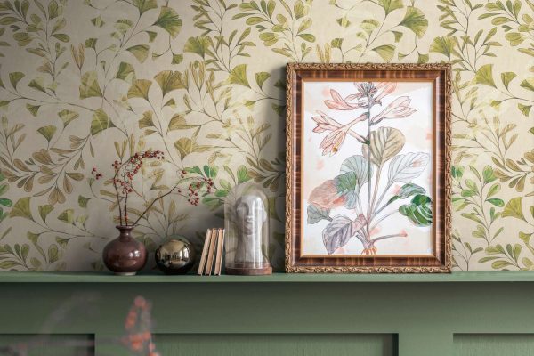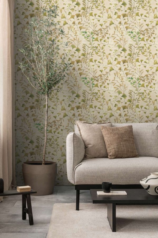 Papel pintado diseño floral ramillete hojas en color verde sobre fondo crema. Medidas: 10,05 m x 0,53 m. Case: 53 cm (case recto). Calidad: Tejido no Tejido. Estilo: Diseño/Tendencias. Boho Chic. Romantic Chic. Acabado: Vinílico mate.