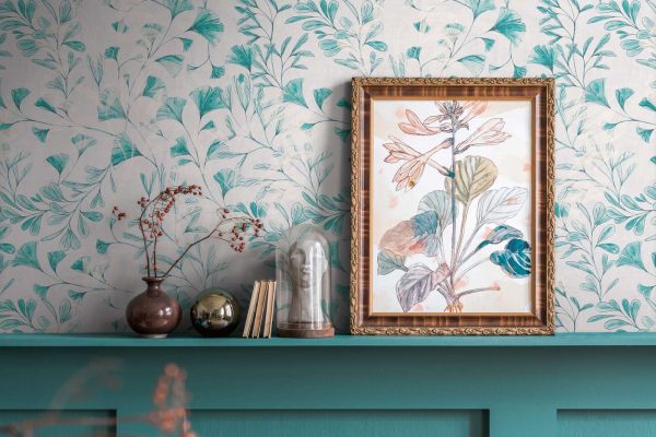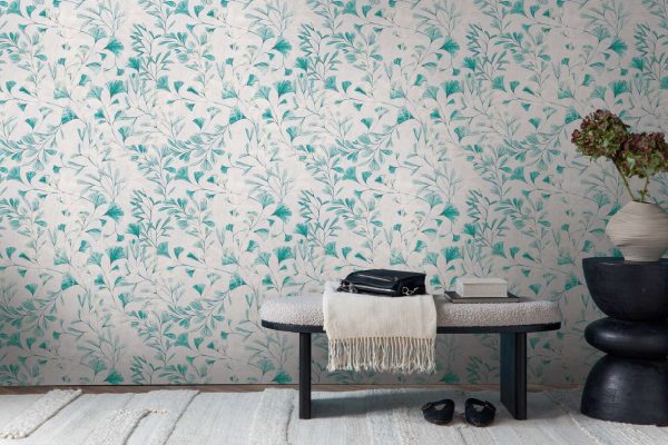 Papel pintado diseño floral ramillete hojas en color azul sobre fondo blanco. Medidas: 10,05 m x 0,53 m. Case: 53 cm (case recto). Calidad: Tejido no Tejido. Estilo: Diseño/Tendencias. Boho Chic. Romantic Chic. Acabado: Vinílico mate.