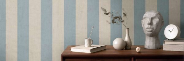 Papel pintado diseño rayas (6 cm de ancho) en color azul y gris. Medidas: 10,05 m x 0,53 m. Case: sin case. Calidad: Tejido no Tejido. Estilo: Diseños/Tendencias. Geométrico. Infantil/Juvenil. Acabado: Vinílico mate.