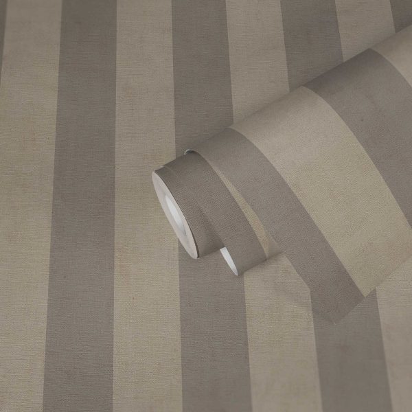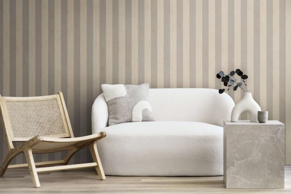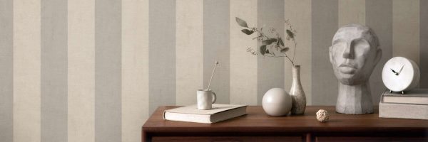 Papel pintado diseño rayas (6 cm de ancho) en color gris claro y gris oscuro. Medidas: 10,05 m x 0,53 m. Case: sin case. Calidad: Tejido no Tejido. Estilo: Diseños/Tendencias. Geométrico. Infantil/Juvenil. Acabado: Vinílico mate.