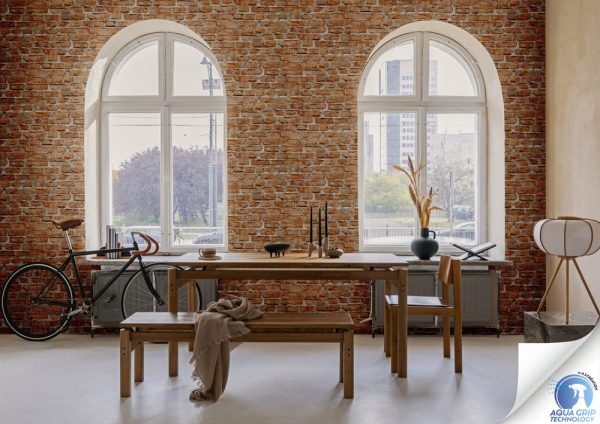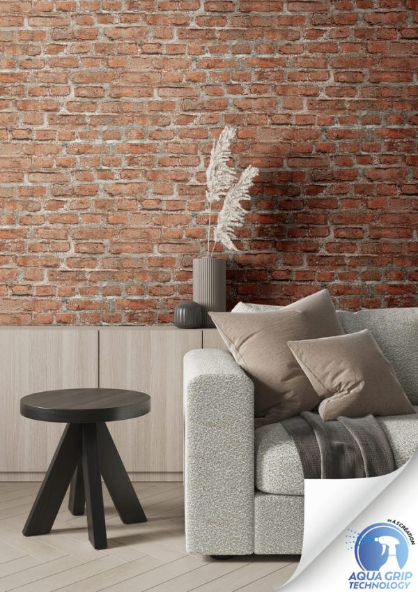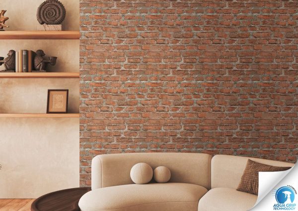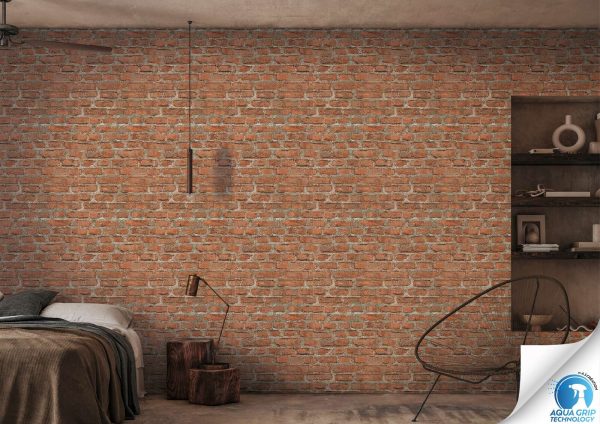 Estilo: Papel pintado ladrillo de obra vista en naranja. Acabado vinílico.
