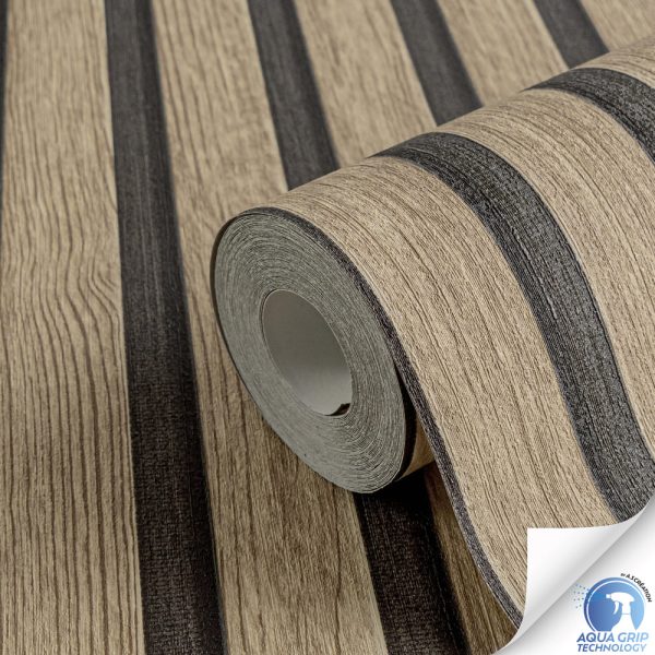 Estilo: Papel pintado efecto madera laminada en color roble natural. Acabado vinílico.