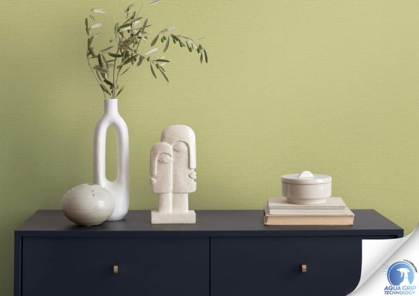 Medidas: 10,05 m x 0,53 m. Case: sin case. Calidad: Tejido no tejido. Pre-encolado. Aplicar agua directamente en la pared o al reverso del papel para activar el adhesivo. Estilo: Papel pintado liso texturado en color verde limón. Acabado vinílico.