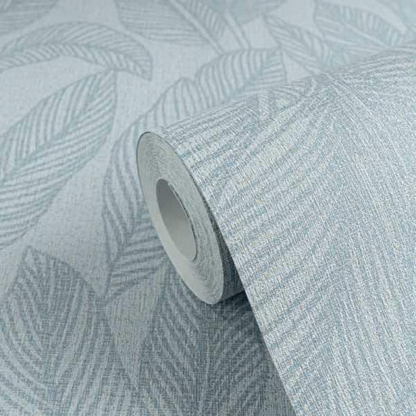 Medidas: 10,05 m x 0,53 m. Case: 64 cm (case recto). Calidad: Tejido no tejido. Estilo: Papel pintado estilo vintage con motivos de hojarasca en color azul con efecto metalizado. Acabado de textura ligera.