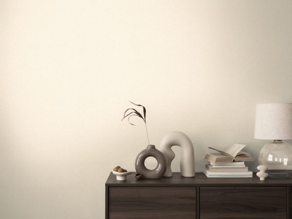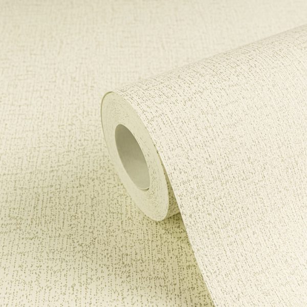Medidas: 10,05 m x 0,53 m. Case: sin case. Calidad: Tejido no tejido. Estilo: Papel pintado liso de textura ligera en color crema con un sutil efecto metálico.