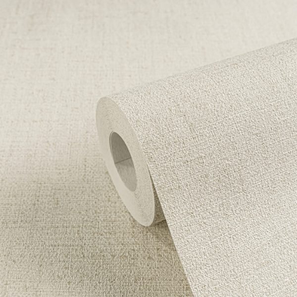 Medidas: 10,05 m x 0,53 m. Case: sin case. Calidad: Tejido no tejido. Estilo: Papel pintado liso de textura ligera en color beige con sutiles detalles dorados.