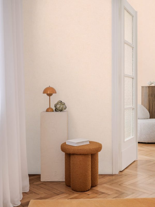 Medidas: 10,05 m x 0,53 m. Case: sin case. Calidad: Tejido no tejido. Estilo: Papel pintado liso de textura ligera en color rosa-pálido con sutiles detalles dorados.