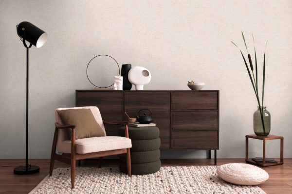 Medidas: 10,05 m x 0,53 m. Case: sin case. Calidad: Tejido no tejido. Estilo: Papel pintado liso de textura ligera en color beige-crema con sutiles detalles dorados.