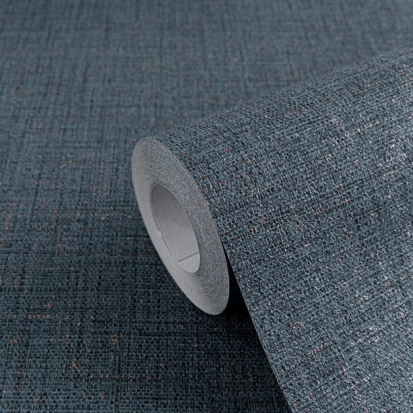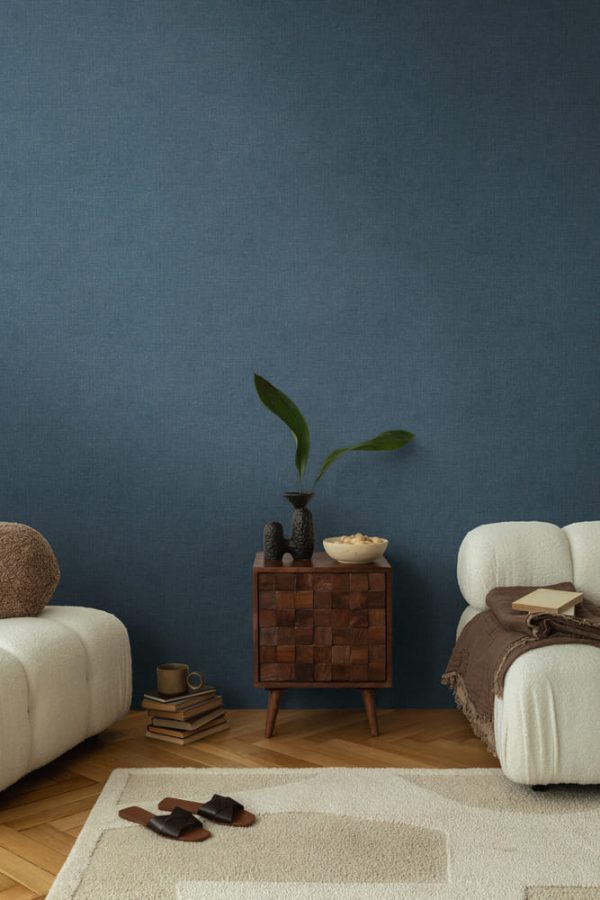 Medidas: 10,05 m x 0,53 m. Case: sin case. Calidad: Tejido no tejido. Estilo: Papel pintado liso de textura ligera en color azul marino con sutiles detalles dorados.