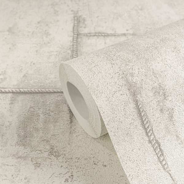 Medidas: 10,05 m x 0,53 m. Case: 64 cm (case recto). Calidad: Tejido no tejido. Estilo: Papel pintado estilo vintage efecto hormigón gris claro con detalles de metal oxidado. Acabado vinílico de alta resistencia.