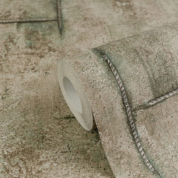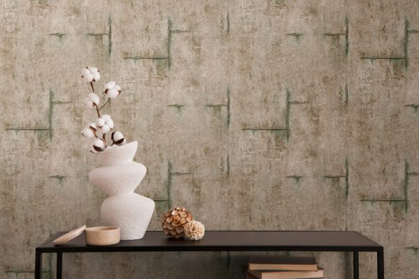 Medidas: 10,05 m x 0,53 m. Case: 64 cm (case recto). Calidad: Tejido no tejido. Estilo: Papel pintado estilo vintage efecto hormigón gris-verde con detalles de metal oxidado. Acabado vinílico de alta resistencia.