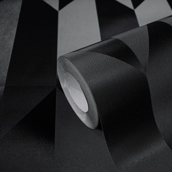 Medidas: 10,05 m x 0,53 m. Case: 64 cm (case recto). Calidad: Tejido no tejido. Estilo: Papel pintado geométrico con acabado brillante de efecto nacarado en color negro.