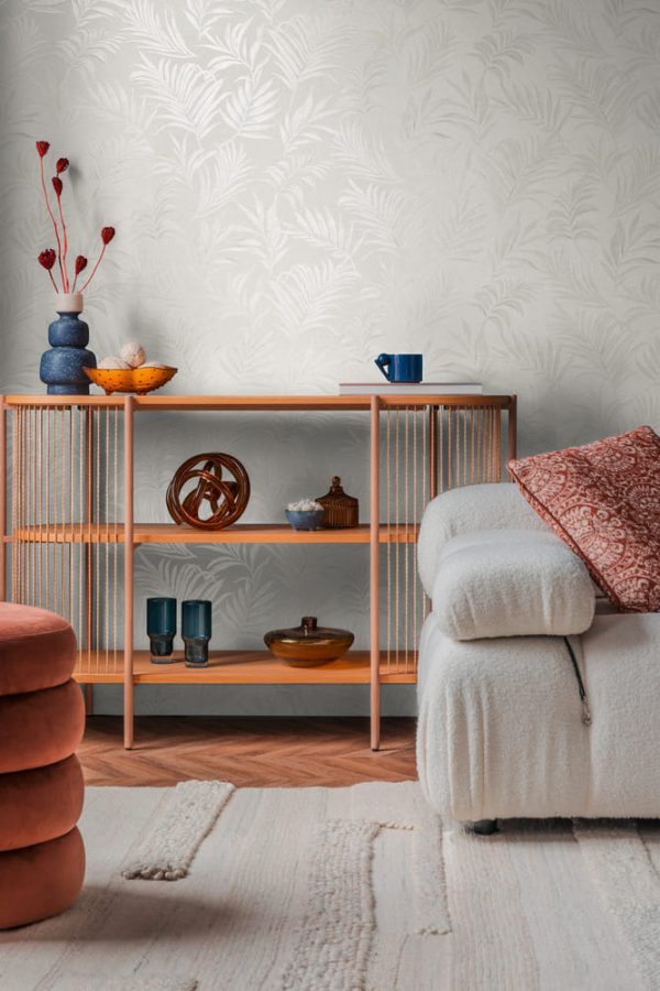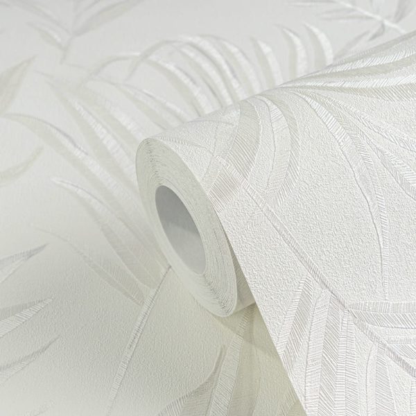 Medidas: 10,05 m x 0,53 m. Case: 64 / 32 cm (offset match). Calidad: Tejido no tejido. Estilo: Papel pintado vintage de estilo tropical de hojas de palmera en color blanco-crema. Acabado vinílico brillante de alta resistencia.