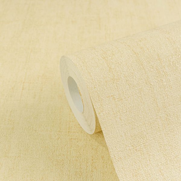 Medidas: 10,05 m x 0,53 m. Case: sin case. Calidad: Tejido no tejido. Estilo: Papel pintado liso con fina textura de lino en color amarillo ocre. Acabado vinílico de alta resistencia.