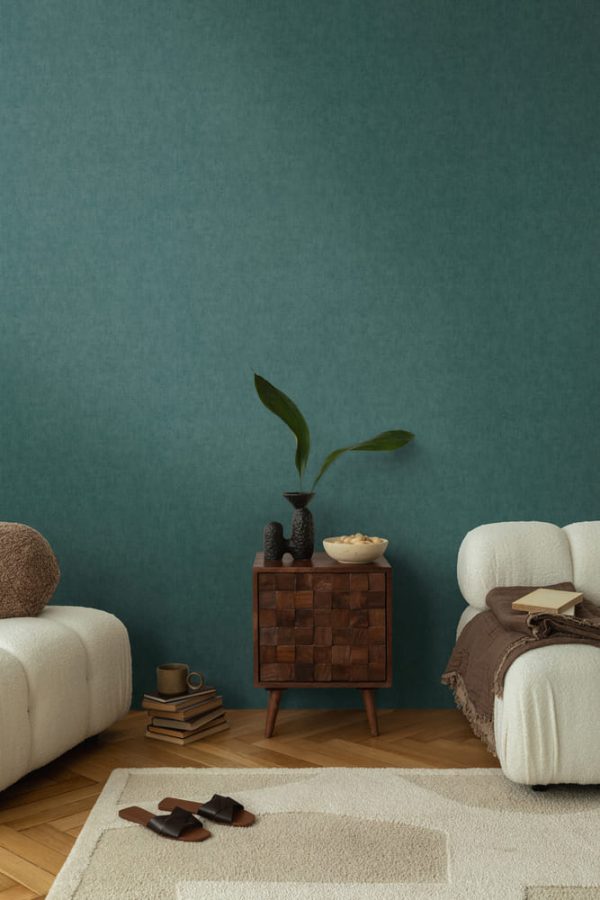 Medidas: 10,05 m x 0,53 m. Case: sin case. Calidad: Tejido no tejido. Estilo: Papel pintado liso de textura ligera en color verde turquesa. Acabado vinílico de alta resistencia.