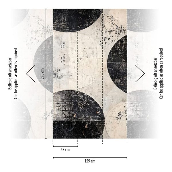 Mural digital diseño abstracto Pop-Art círculos en color blanco y negro. Patrón permite repetición.