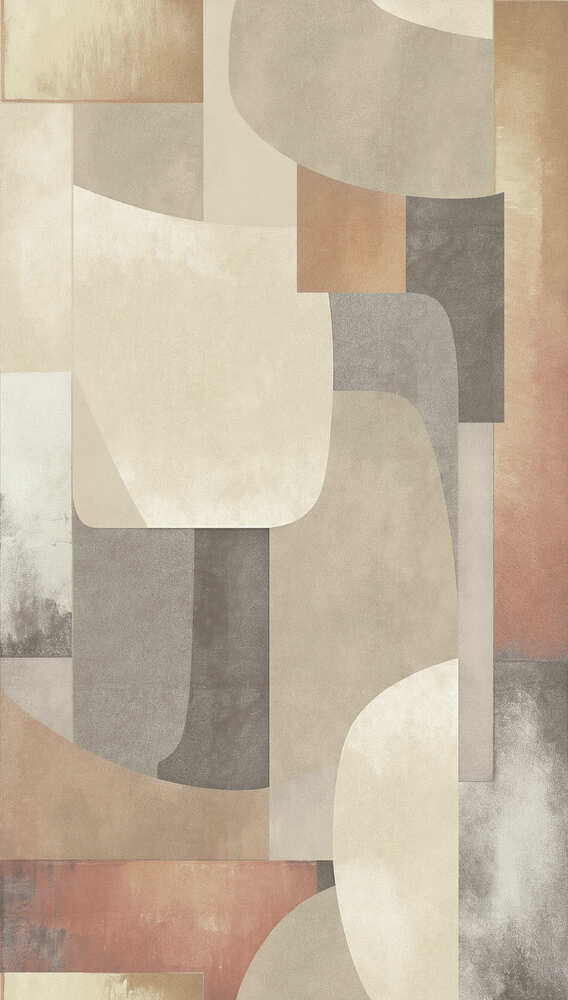 Mural digital diseño abstracto formas geométricas en suaves tonos tierra; beige, gris y naranja. Patrón permite repetición.