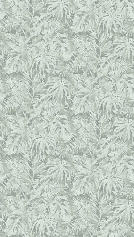 Mural digital diseño natural de hojarasca de palmeras en color verde aguamarina. Patrón permite repetición.